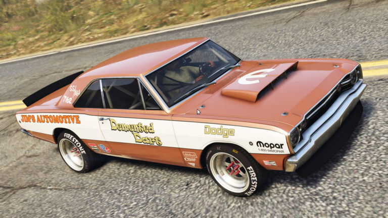 The legendary 1968 Dodge Dart HEMI rolls into GTA V in a high-quality, fully animated version that captures the raw spirit of American muscle. With a bold livery, detailed textures, and functional animations, this mod is a tribute to the golden age of V8 performance — perfect for players who crave classic power and retro flair.
