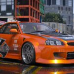 - Custom flame livery, wide body kit, and racing spoiler